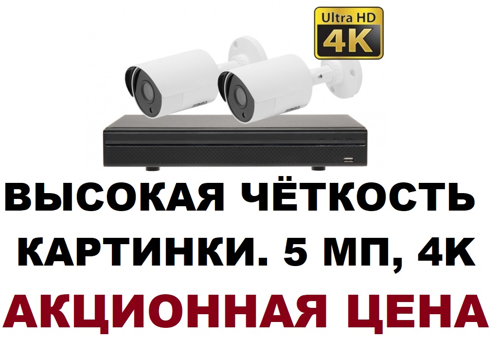 Магазин Сигнал предлагает комплект видеонаблюдения на 2 камеры с широким углом обзора 5 мегапикселей 4K C ВЫСОЧАЙШИМ КАЧЕСТВОМ ИЗОБРАЖЕНИЯ и по супер цене.