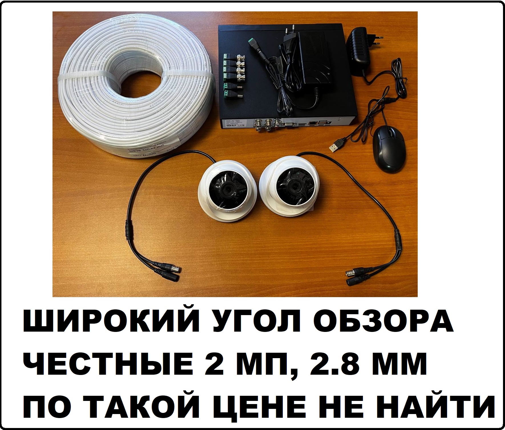только у нас в магазине за эту цену вы купите комплект камер с широким углом обзора. если сравнивать другие предложения, то камеры там будут с узким обзором, с плохом качеством картинки (1 мп вместо 2х), и непонятно какого качества электроники. приезжайте, мы наглядно покажем вам картинку с наших камер и камер других брендов!