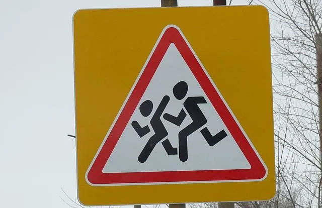 Дорожный знак 1.23 "Дети" с желто-зеленой флуоресцентной полосой