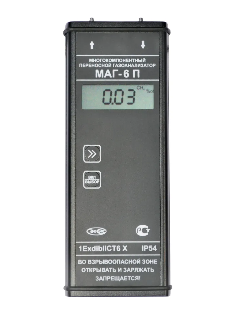 Газоанализатор МАГ-6 П-К предназначен для измерений объёмной доли кислорода, метана, массовой концентрации оксида углерода, сероводорода.
