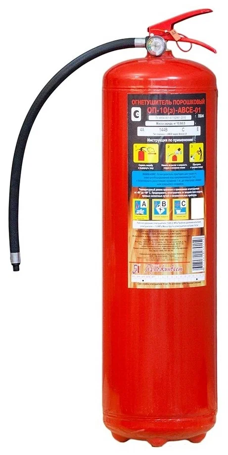 Данный огнетушитель хорошо подойдет для автомобильного транспорта, как легкового, так и грузового. Огнетушитель ОП-10 (з) прекрасно справится с тушением жидких, твердых, газообразных материалов, проводки напряжением до 1000В, а также для прохождения технического осмотра автотранспортного средства. Огнетушитель 10 (з) часто используется для комплектования пожарных щитов, для магазинов, дач, квартир и промышленных помещений. Не стоит тушить оборудование с помощью данного огнетушителя из-за вероятности его поломки при попадании порошка в механизмы и детали. Для оборудования лучше выбрать углекислотный огнетушитель ОУ.