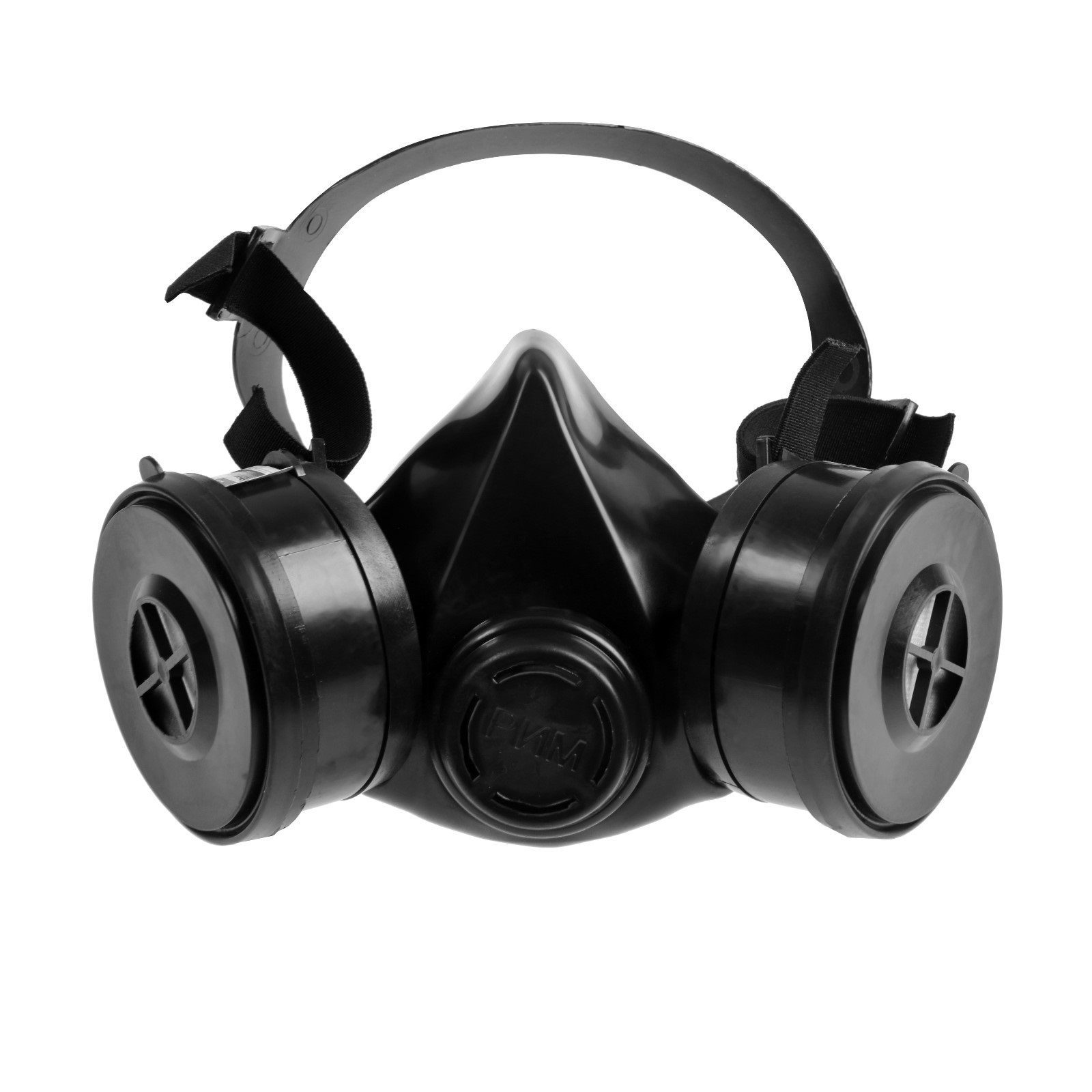 Изолирующая полумаска с комбинированными фильтрами РУ-60М предназначена для защиты органов дыхания от воздействия вредных веществ, присутствующих в воздухе одновременно в виде паров, газов и аэрозолей (пыли, дыма, тумана). Применяется при объемной доле свободного кислорода не менее 17% и концентрации вредных веществ не более 0,1% (объёмных) при температуре от -40 до +50 градусов С. Состоит из: изолирующей полумаски и двух сменных комбинированных фильтров. Изолирующая полумаска изготовлена из термопластичного изолирующего материала, снабжена эластичным оголовьем. Полоса обтюрации полумаски закрыта трикотажной лентой. В боковых отверстиях полумаски закреплены манжеты из полиэтилена с клапанами вдоха, в которые вставляются сменные противогазовые фильтры различных марок, а в нижнем отверстии полумаски закреплён клапан выдоха, закрытый предохранительным экраном. В зависимости от назначения поставляется со сменными фильтрами марок А1Р1D, В1Р1D, Е1Р1D, К1Р1D, A1B1E1P1D, А1В1Е1К1Р1D. Марка фильтра Вещества, от которых защищает фильтр А1Р1D От паров и газов органических веществ с температурой кипения выше 65°С (циклогексан, бензол, ксилол, толуол, анилин, ацетонитрил, нитробензол, фенол, фурфурол и др.) и аэрозолей (пыль, дым, туман) В1Р1D От неорганических газов и паров (хлор, сероводород, синильная кислота, хлорциан, сероуглерод, йод и др.), кроме оксида углерода и аэрозолей (пыль, дым, туман) Е1Р1D От кислых газов и паров (диоксид серы, хлорид водорода, фосфин и др.) и аэрозолей (пыль, дым, туман) К1Р1D От аммиака и его органических производных, и аэрозолей (пыль, дым, туман) А1В1Е1Р1D От органических веществ с температурой кипения выше 65 градусов C, неорганических и кислых газов и паров, и аэрозолей (пыль, дым, туман) А1В1Е1К1Р1D универсальный От органических веществ с температурой кипения выше 65 градусов C, неорганических и кислых газов и паров, аммиака и его производных и аэрозолей (пыль, дым, туман)