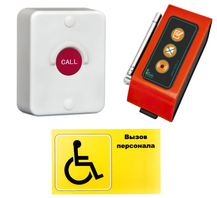приёмник вызова, который устанавливается в помещении рядом с персоналом (при нажатии инвалидом на кнопку, данный приёмник издает писк звук, приёмник идет с блоком питания и работает от сети)