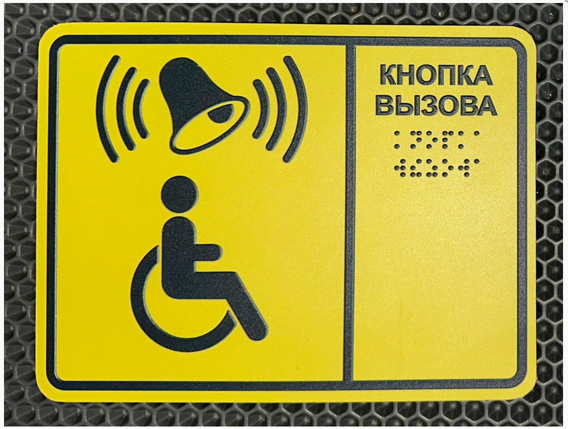 Табличка "кнопка вызова " для инвалидов желтая шрифт Брайля во Владивостоке Артёме