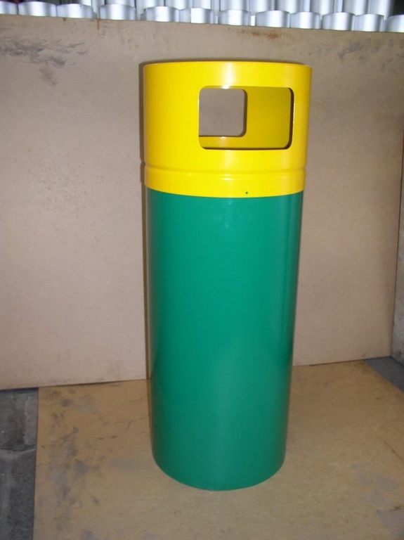 Габаритные размеры Высота - 1000 мм. Диаметр урны - 400 мм. Вес 12,5 кг. Объем 125 л.