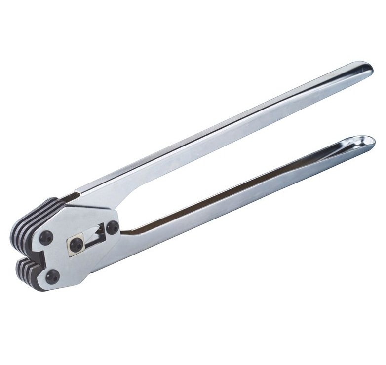 Механические клещи для сжимания скобы — наиболее легкий, доступный и экономически выгодный инструмент для закрепления лент. Он отличается: